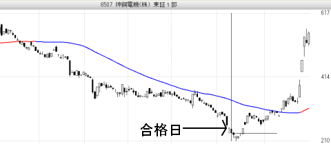 下値抵抗ラインからの上昇率が高くない水準で合格するため、「深追い」にはなりません。